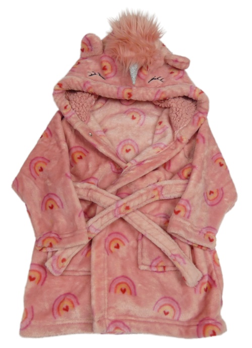 Ružový chlpatý župan s duhami a kapucňou Matalan