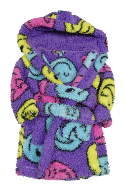 Fialový huňatý župan so smajlíkmi a kapucňou Dunnes