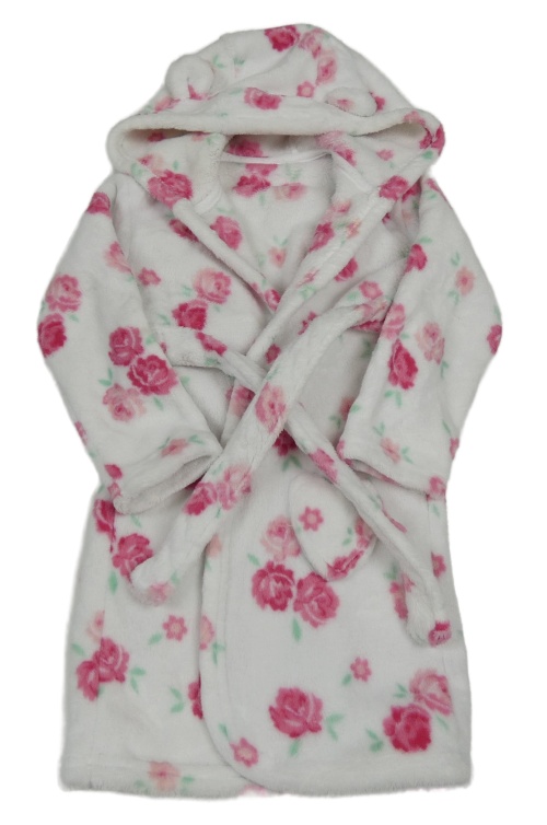 Bielo-ružový plyšový kvetovaný župan s kapucňou George
