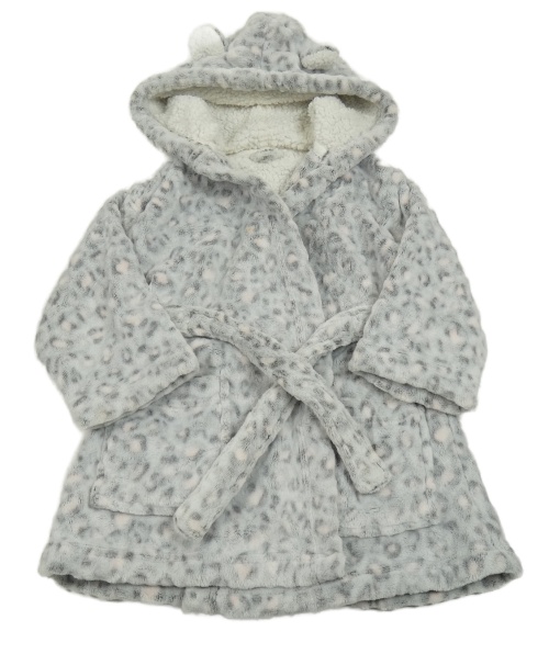 Svetlosivý chlpatý župan s leopardím vzorom a kapucňou Nutmeg