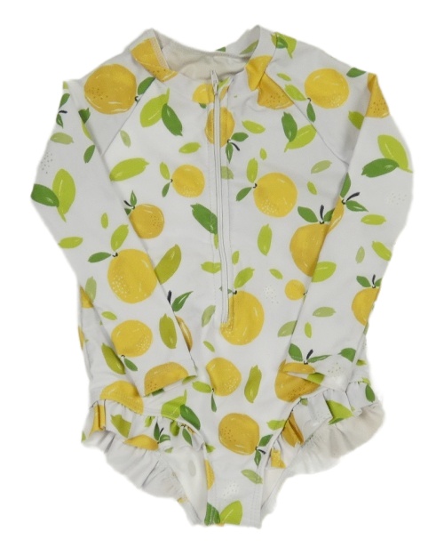 Biele jednodielne plavky s citrony a volánikmi a UV ochranou SHEIN