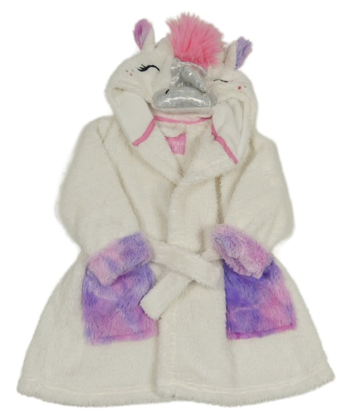 Smotanový trblietavý huňatý župan s kapucí - jednorožec Tu