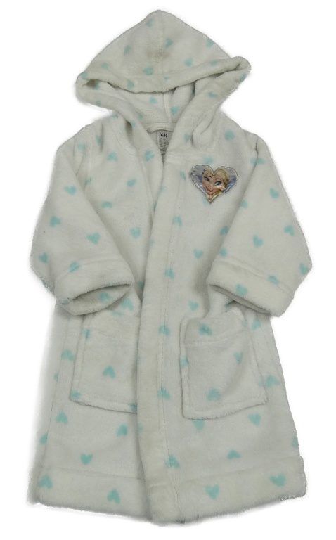 Bielo-modrý plyšový župan so srdiečkami a Elsou a kapucňou H&M