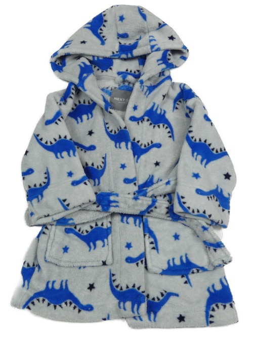 Sivý chlpatý župan s dinosaurami a kapucňou Next