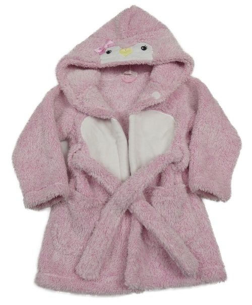 Svetloružový chlpatý župan s tučňákem a kapucňou