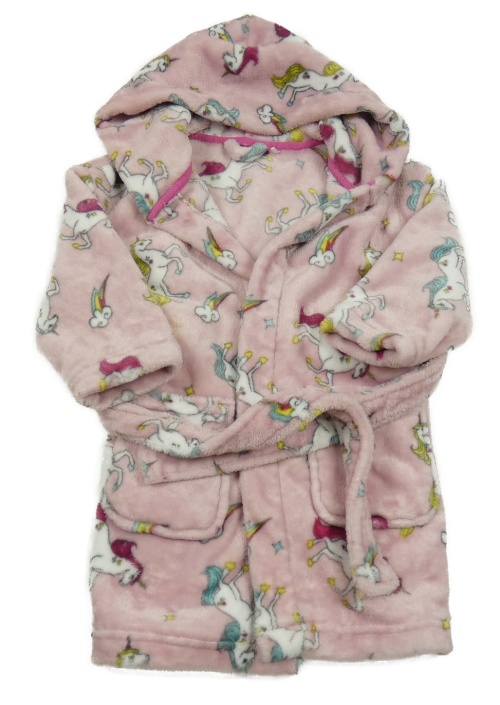 Svetloružový chlpatý župan s jednorožcami a kapucňou V by Very