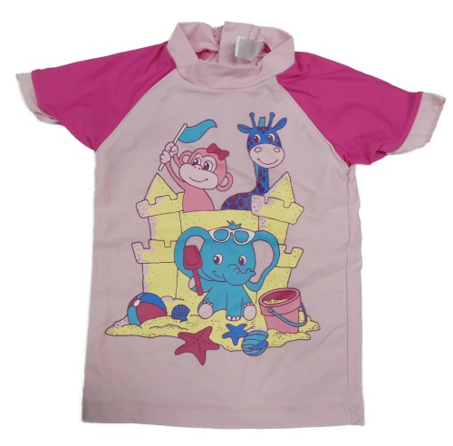 Světle-tmavoružové UV tričko s opicou a žirafou
