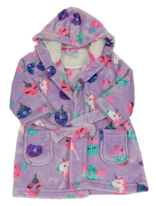 Fialový chlpatý župan s jednorožci, donuty a kapucňou Bluezoo