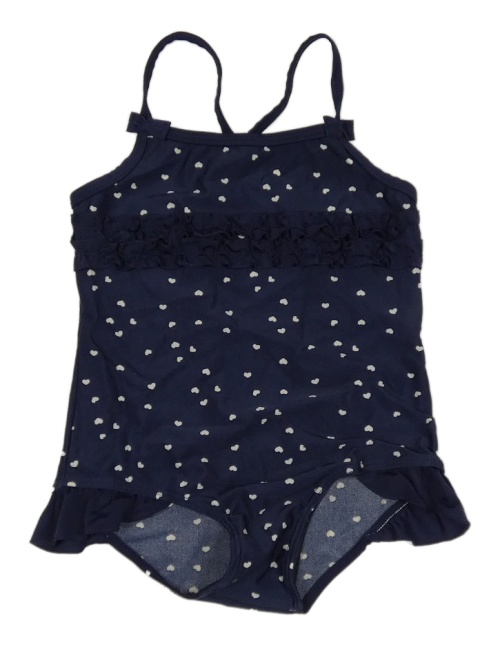 Tmavomodré srdiečkované jednodielne plavky s volánikmi Topomini