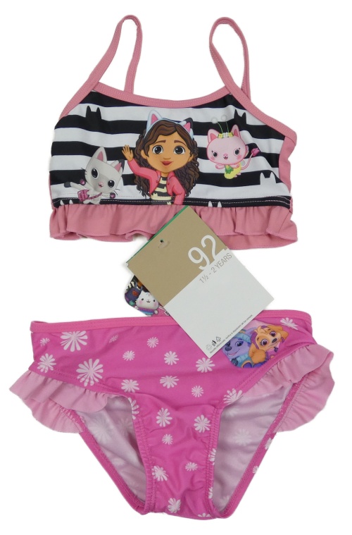 • Nové - 2Set - Tmavoružové plavkové nohavičky s PAW PATROL a volánky + růžovo/černo/bílá plavková lambáda - Gábinin kouzelný domek