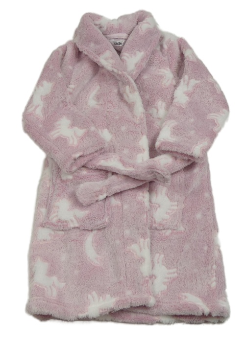 Svetloružový chlpatý župan s jednorožcami M&Co.