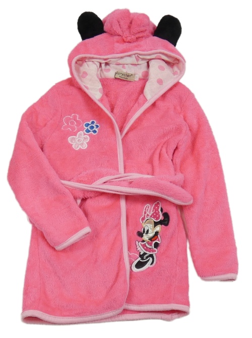 Neónově ružový chlpatý župan s Minnie a kapucňou