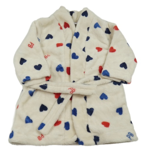Bielo-modro-červený plyšový župan so srdiečkami