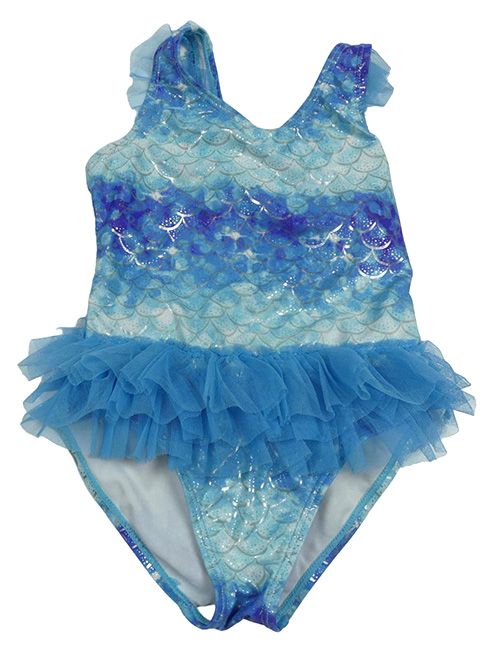 Modré vzorované jednodielne plavky s tylem - mořská panna