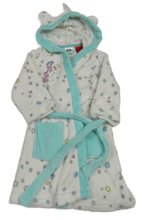Bielo-světelemodrý plyšový župan s hviezdami a kapucňou