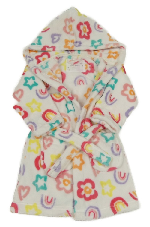 Biely chlpatý župan s obrázkami a kapucňou F&F