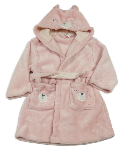 Svetloružový plyšový župan s medvedíkmi a kapucňou C&A