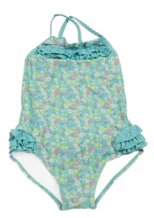 Svetlomodré kvetované jednodielne plavky s volánikmi Topomini