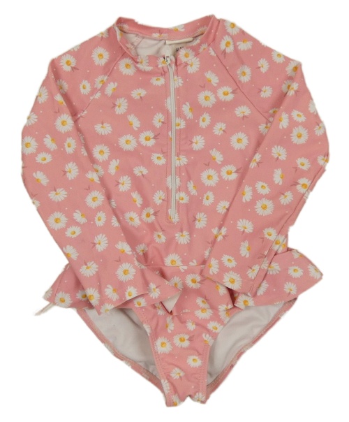 Ružové jednodielne plavky s kopretinami a volánikmi a UV ochranou SHEIN