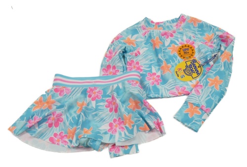 Nové - 2 set - modro-ružové kvetované UV triko + plavková UV sukňa s všitými kalhotkami