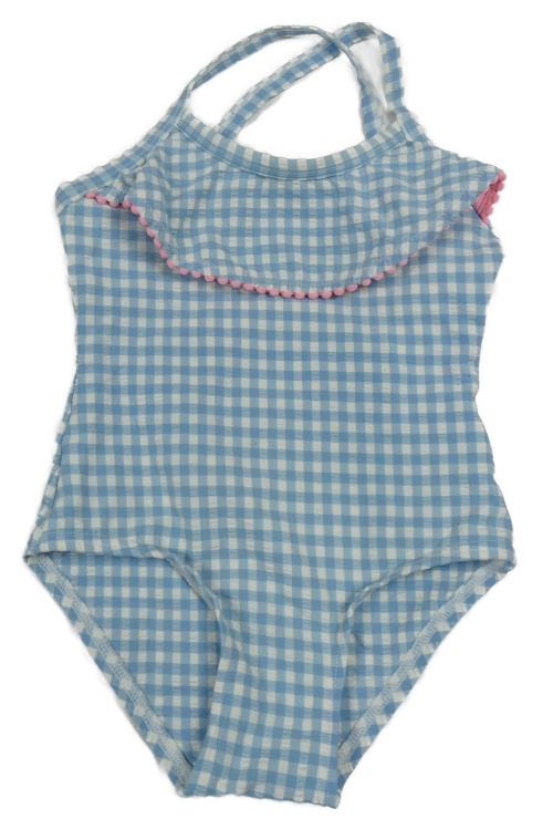 Světlemodro-biele kockované jednodielne plavky s volánikom John Lewis