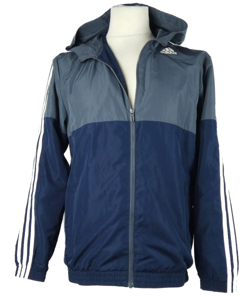 Pánska tmavomodro-sivá funkčná šušťáková športová bunda s kapucňou Adidas