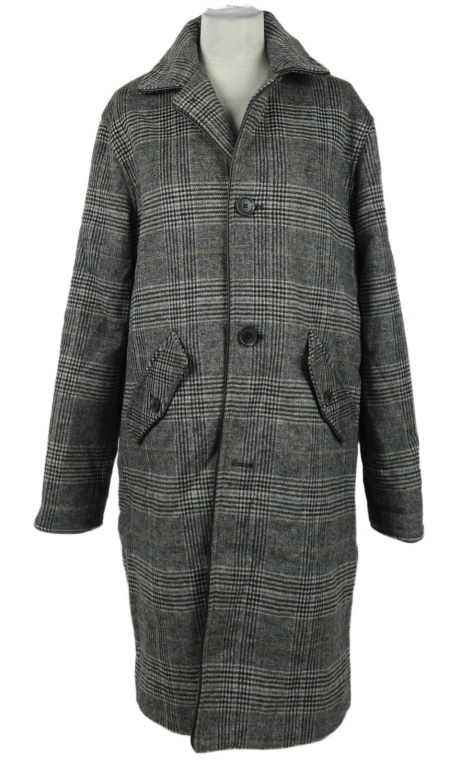 Nové - Pánsky tmavomodrý kockovaný vlnený kabát Topman