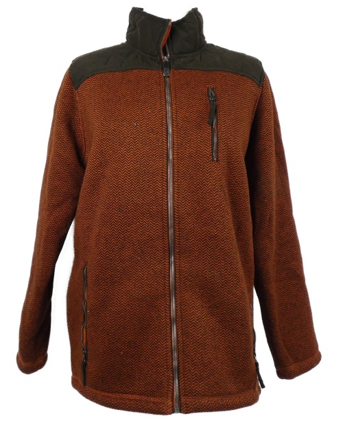 Pánska tehlovo-hnedá vzorovaná pletená zateplená bunda Cotton