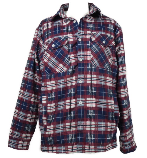 Pánska tmavomodro-červeno-biela kockovaná zateplená košeľová bunda