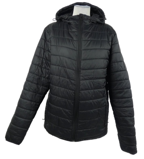 Pánska čierna šušťáková prešívaná zateplená bunda s kapucňou