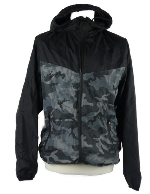 Pánska sivo-čierna army šušťáková jarná bunda s kapucňou H&M