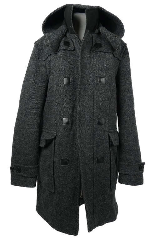 Pánsky sivo-čierny vlnený zateplený dlhý kabát Esprit