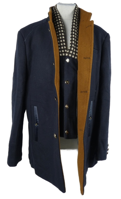 Pánska tmavomodro-hnedá vlnená lehce zateplená bunda
