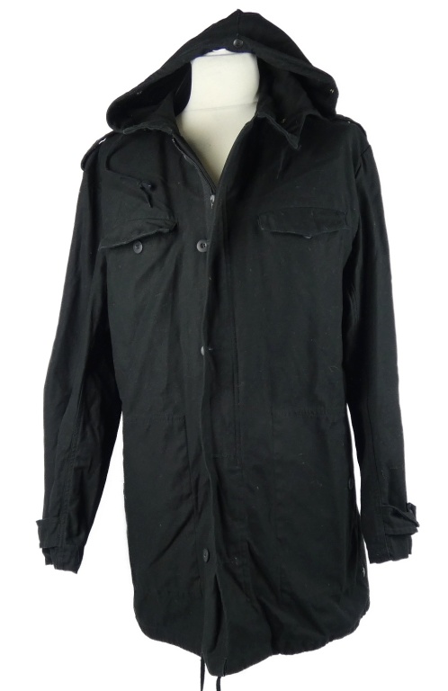 Pánsky čierny plátenný jarný kabát s kapucňou