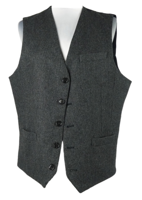 Pánska sivo-tmavomodrá vlněno/saténová vesta