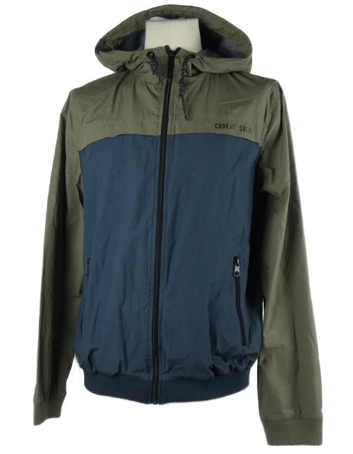 Pánska kaki-tmavomodrá plátenná jarná bunda s kapucňou Sublevel