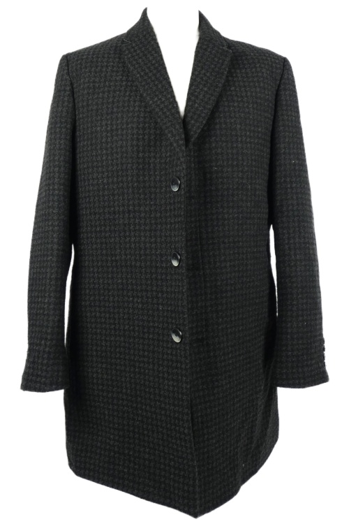Pánsky čierno-sivý vzorovaný zateplený vlnený kabát McNeal
