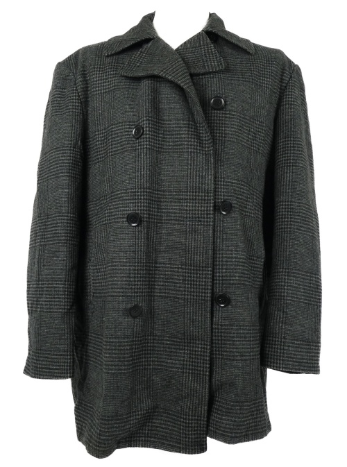 Pánsky tmavosivý kockovaný vlnený kabát