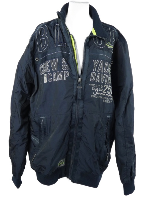 Pánska tmavomodrá šušťáková jarná bunda s nápismi Camp David