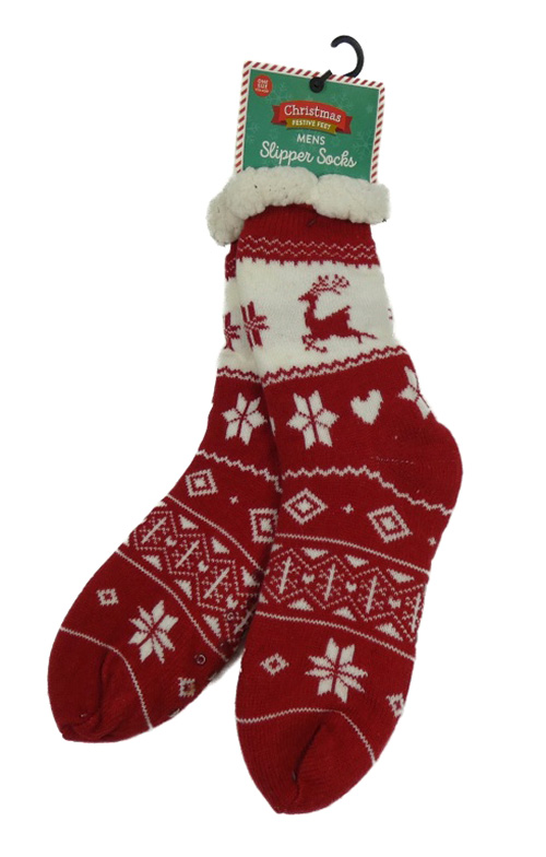 Nové - Pánske červeno-biele teplákové domáceé ponožky so vzorem vel. 43-45