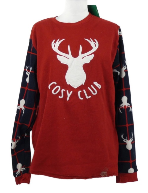 • Nové - Pánske červeno-tmavomodré fleecové pyžamové tričko so sobom