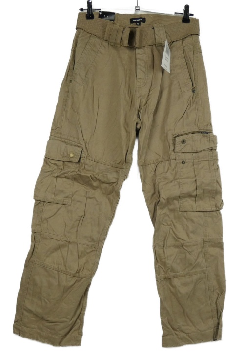 Nové - Pánske béžové plátenné cargo nohavice s kapsami vel. 30/30