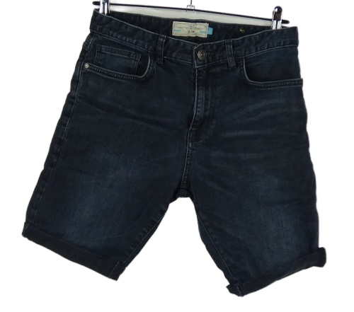 Pánske tmavomodré slim rifľové kraťasy Next