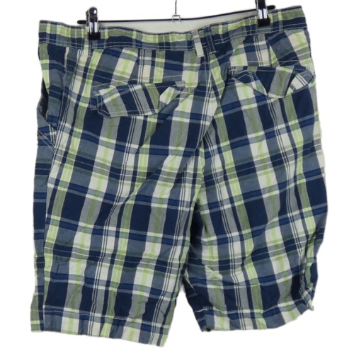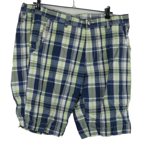 Pánske tmavomodro-zelené kockované plátenné kraťasy Luciano