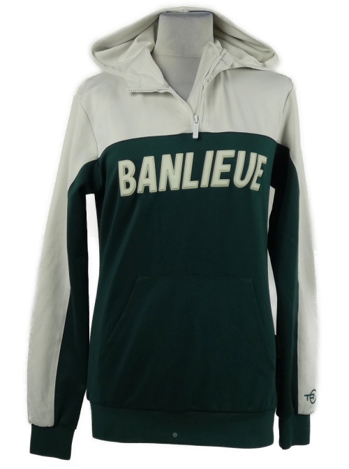 Pánska tmavozeleno-biela športová mikina s nápisom a kapucňou Banlieue