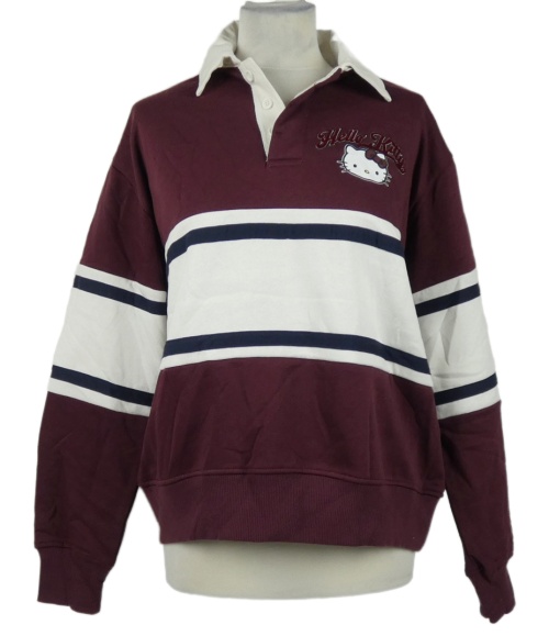 • Pánska vínovo-biela pruhovaná mikina s Hello Kitty a golierikom Primark