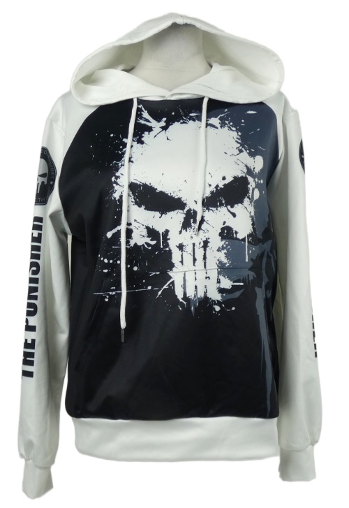 Pánska čierno-biela športová mikina s lebkou a kapucňou