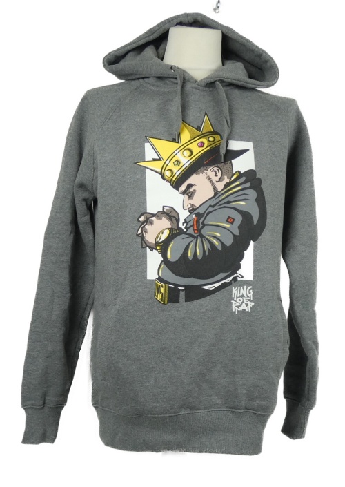 Pánska sivá mikina s potlačou a kapucňou