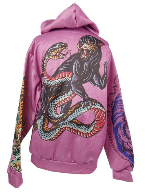 Pánska ružová mikina s potlačou a kapucňou