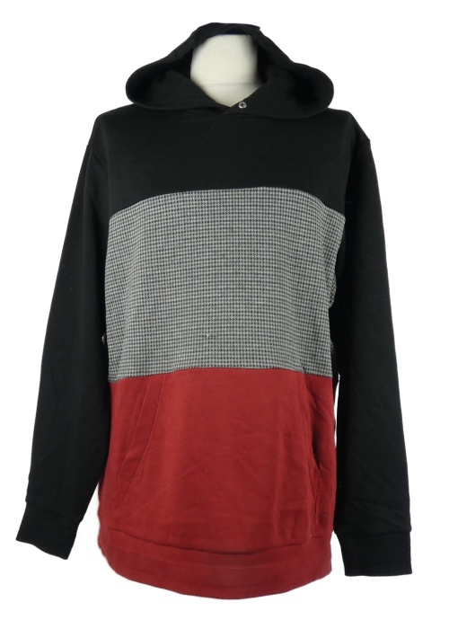 Pánska čierno-sivo-červená vzorovaná mikina s kapucňou C&A